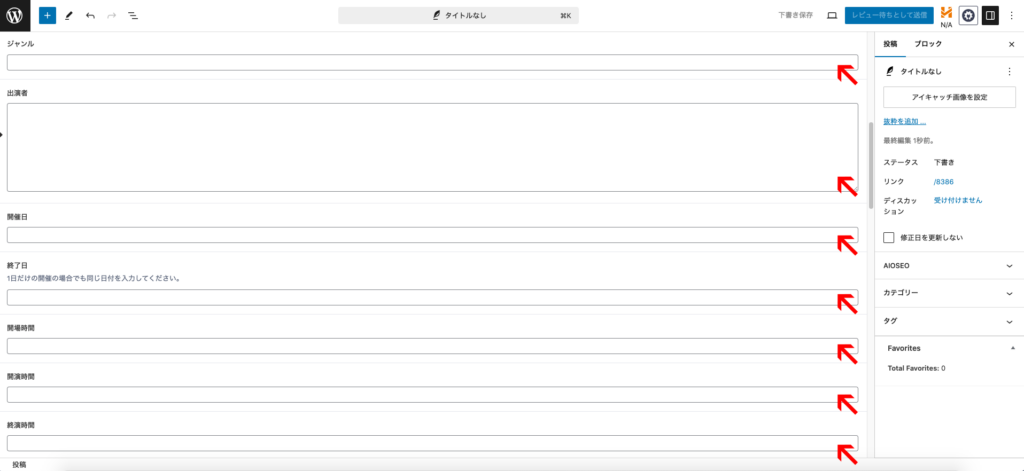 ジャンルイベントのジャンルを,カンマで区切って入力。ユーザーがキーワード検索した際に検索にかかりやすくなります。