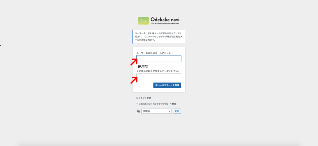 3、メールアドレスを入力「新しいパスワードを取得」をクリック