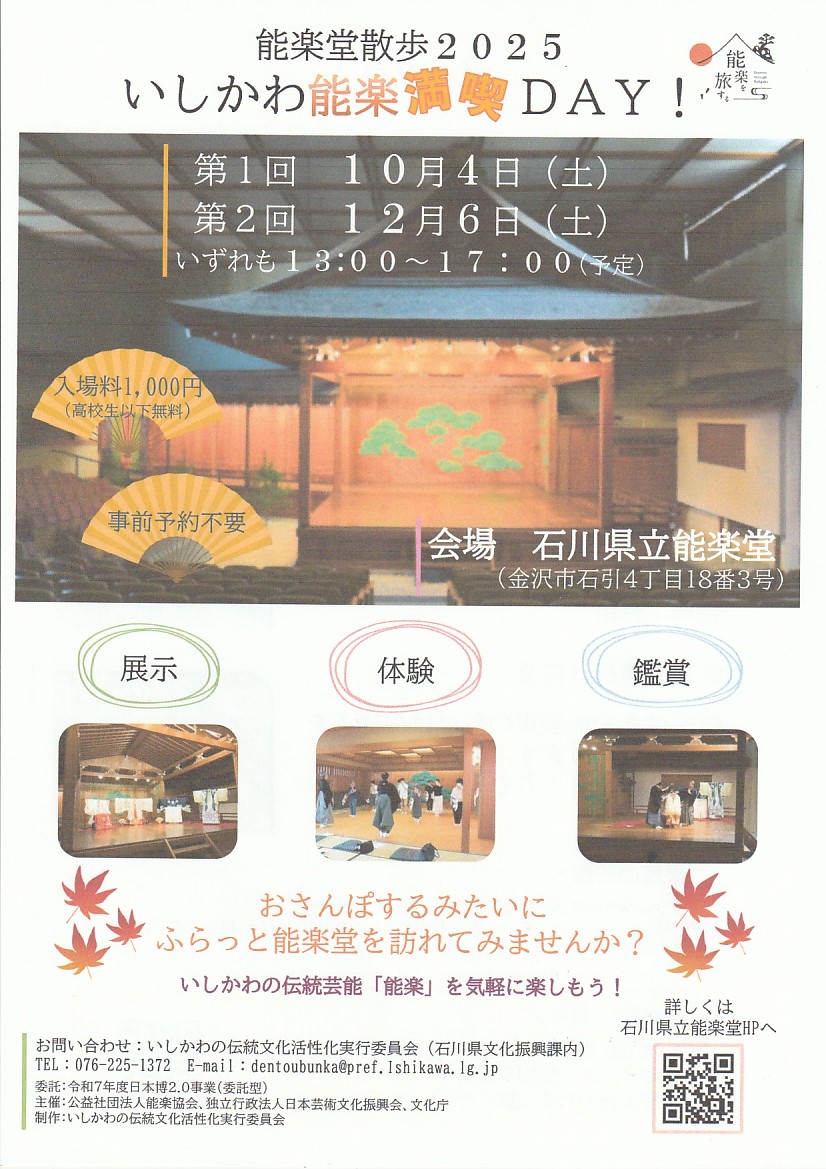 | イベント名 | 能楽堂散歩2025 いしかわ能楽満喫DAY! |